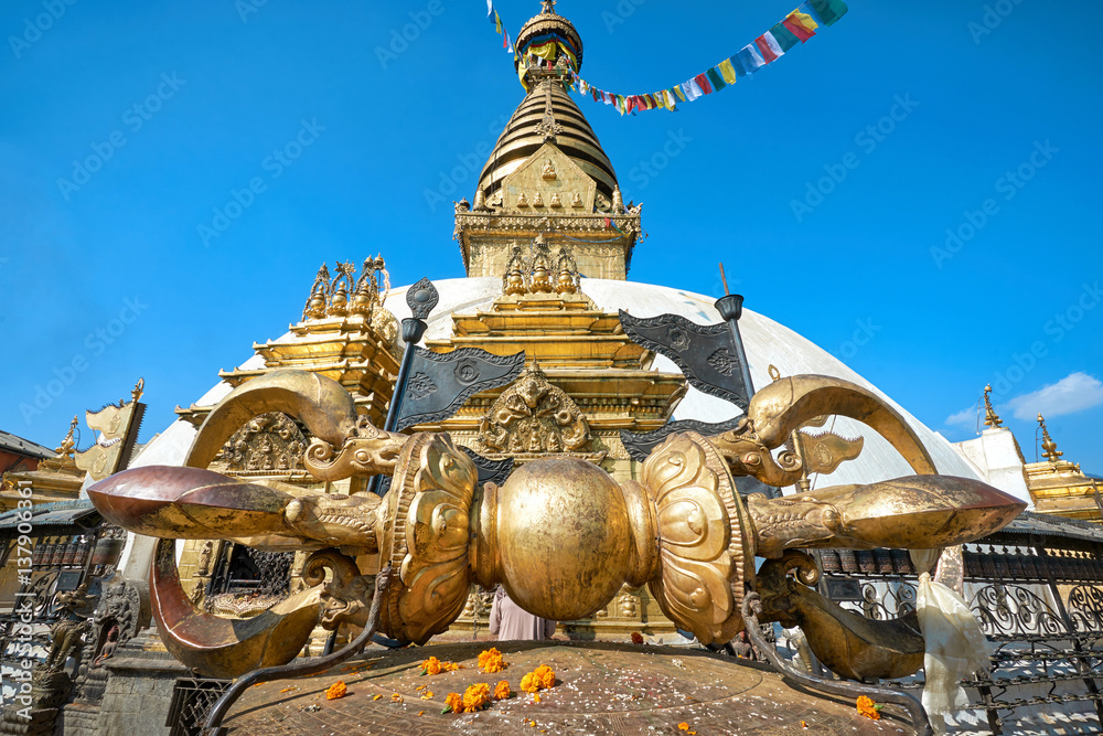 Ngay trước lối vào chính của bảo tháp là một chiếc Kim Cương Chử (Vajra) bằng đồng khổng lồ.